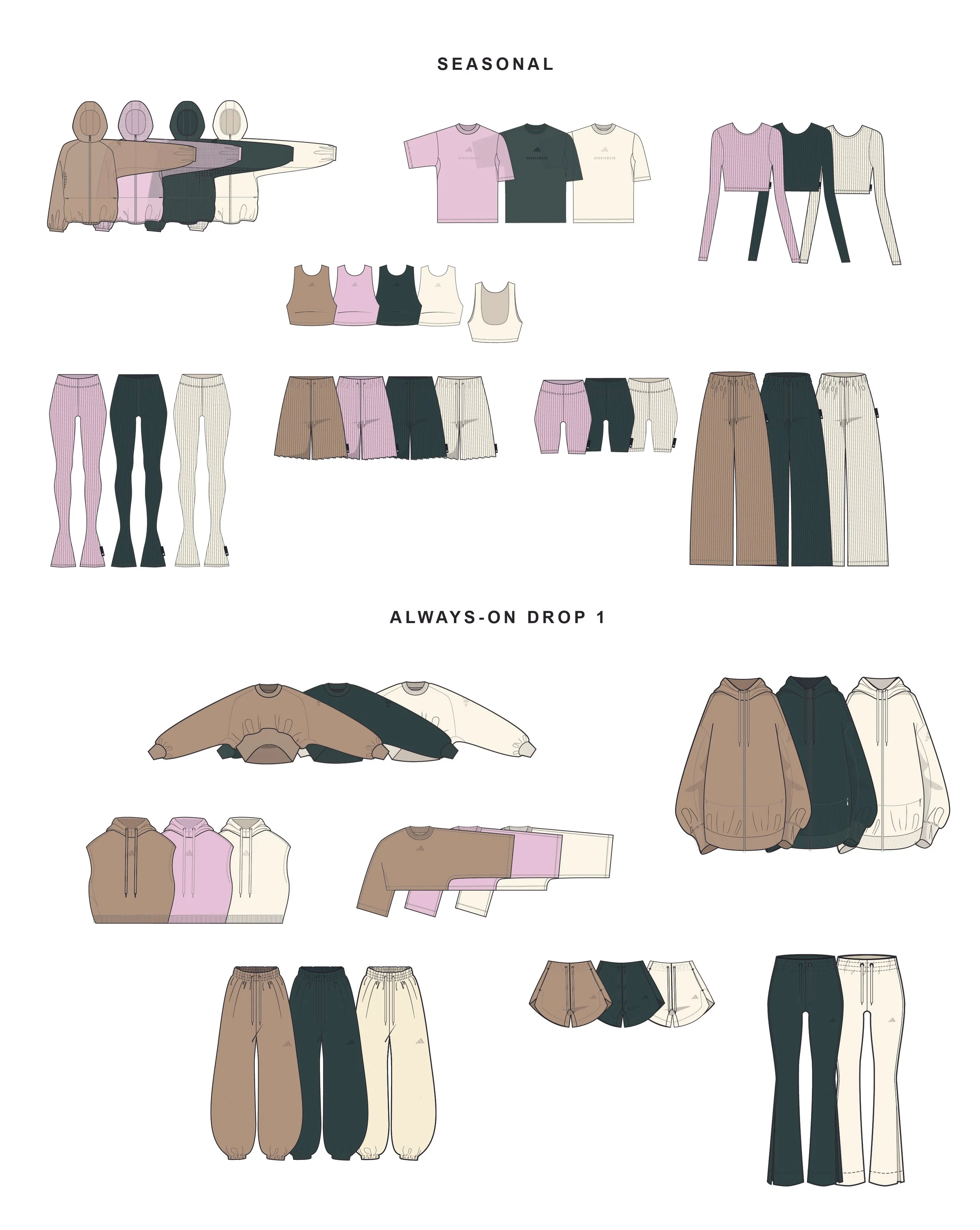 A modern take on femininity, expressed through fluid silhouettes and tactile comfort. Technical materials meet lifestyle ease — engineered for movement, designed for everyday. From studio to street, each piece blends performance with timeless design, embodying the essence of quiet luxury.