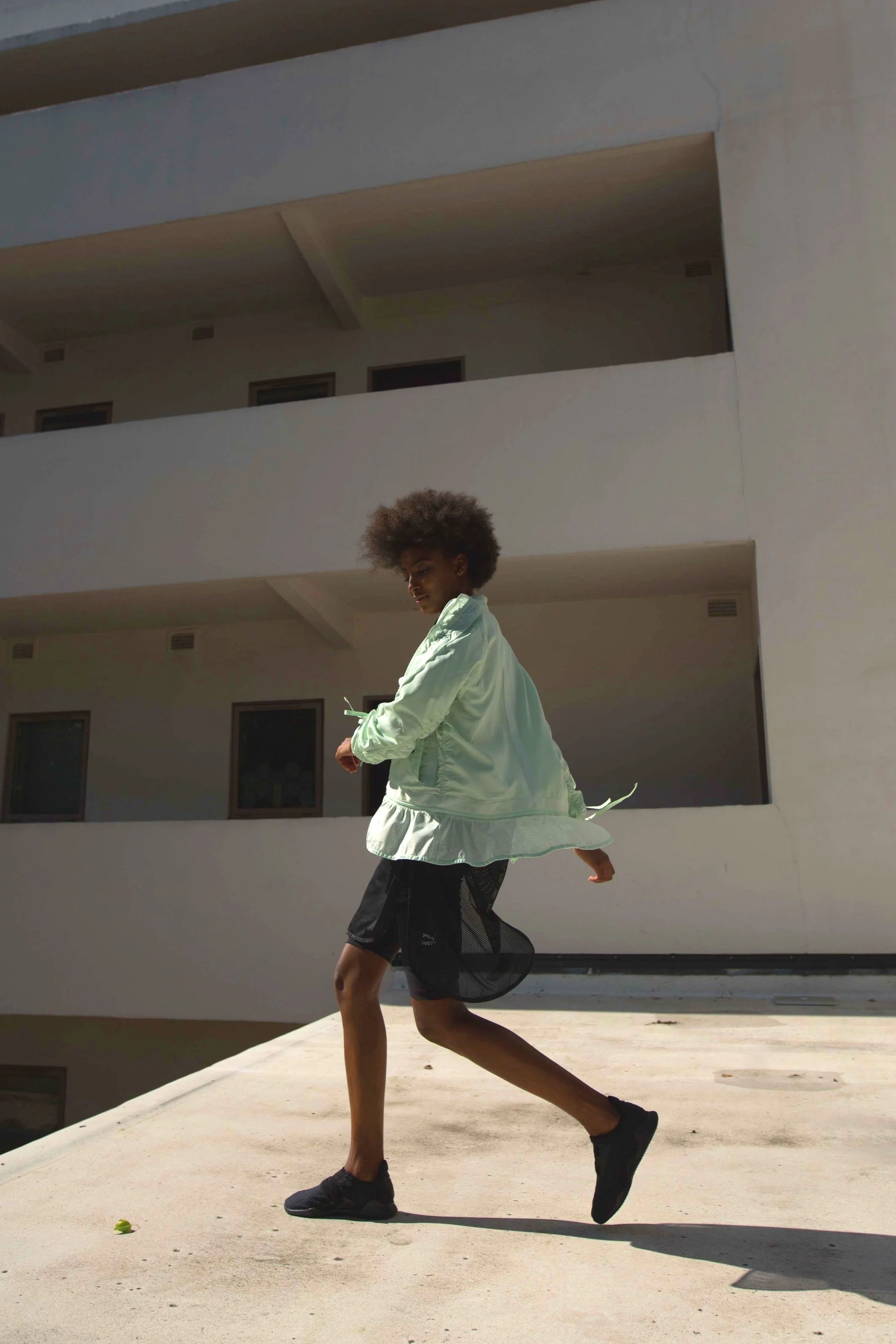 It is all about pastel colors, and cute detailing meeting with performance perforated material for the jacket and basket ball mesh as a red thread.